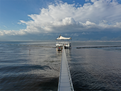 采用高效可調(diào)式渦井取藻、藍(lán)藻囊團(tuán)破壁、一體化二級(jí)強(qiáng)化氣浮等核心技術(shù),岸上站點(diǎn)藻水分離系統(tǒng)集成了藍(lán)藻打撈、脫氣沉降、氣浮分離、脫水等多個(gè)環(huán)節(jié)的技術(shù)和設(shè)備,形成了可規(guī)模化和工廠化處理藍(lán)藻的基站。適用于藍(lán)藻水華長(zhǎng)期規(guī)律性、大范圍聚集區(qū)域的常態(tài)化應(yīng)急處置。